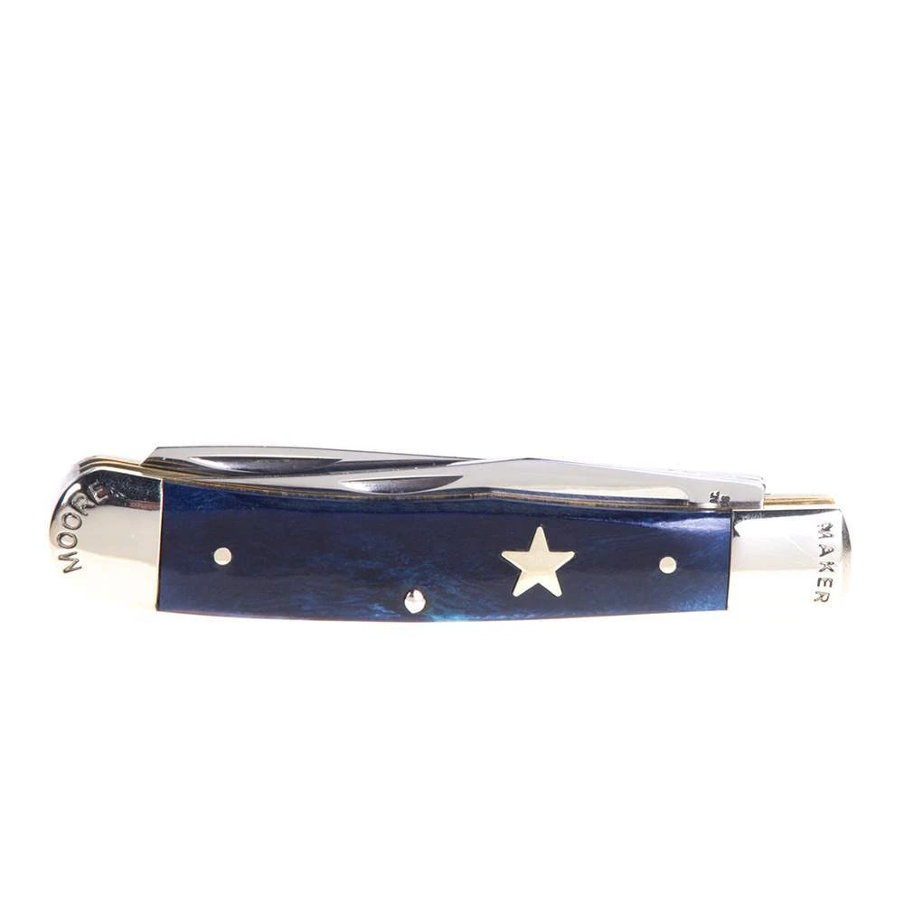 - Handle:Â Smooth bone, More Maker Stamped in bolsters/brass liners, Texas Shield on one side Lone Star on other