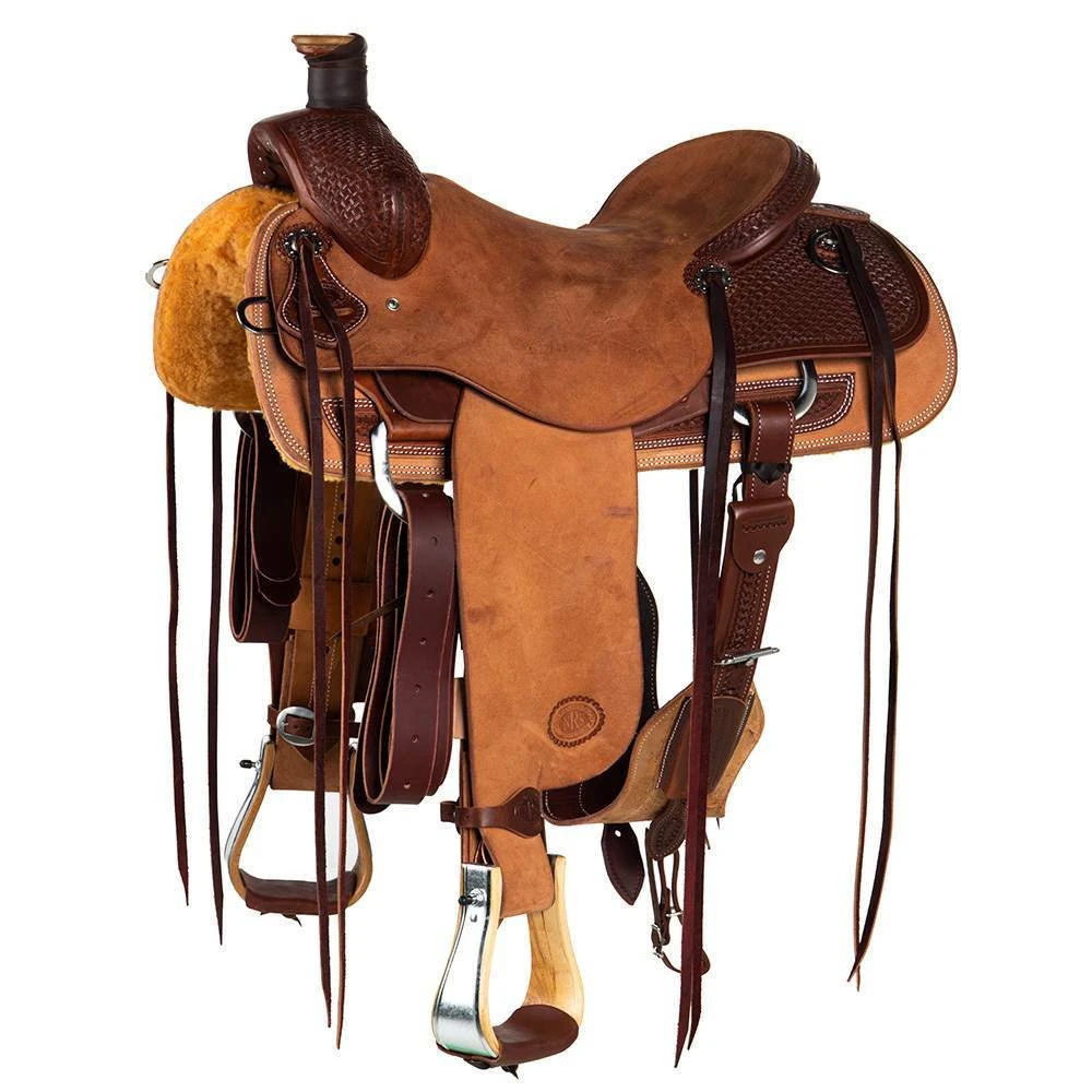 This NRS Competitor Series Will James Ranch Roper has a lifetime warranty on the fiberglass covered wood tree, 3″ low cantle, 3″ metal bound bell stirrups, natural leather, a hard seat with Cheyenne Roll, and 90/10 wool blend lining. This saddle is built with a deep pocket for a comfortable ride all day.