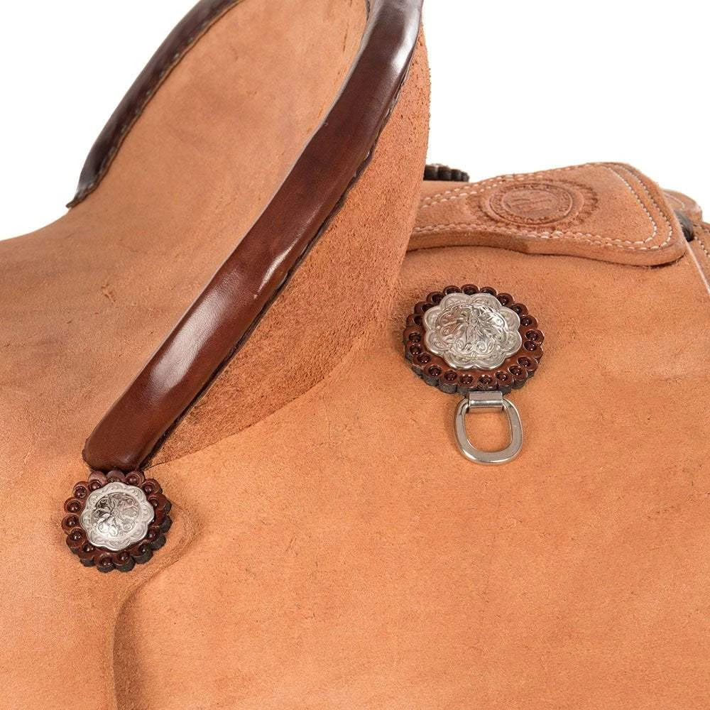 This NRS Competitor Series Team Roper has a 5 year warranty on the rawhide covered wood tree, antiqued silver floral berry conchos, smooth leather covered roper stirrups, all roughout natural leather, pencil roll cantle, front 7/8 drop rigging, a hard seat, and 90/10 wool blend lining. The seat pocket is constructed to help hold the roper in place and offer better balance effectively giving the roper every advantage.
