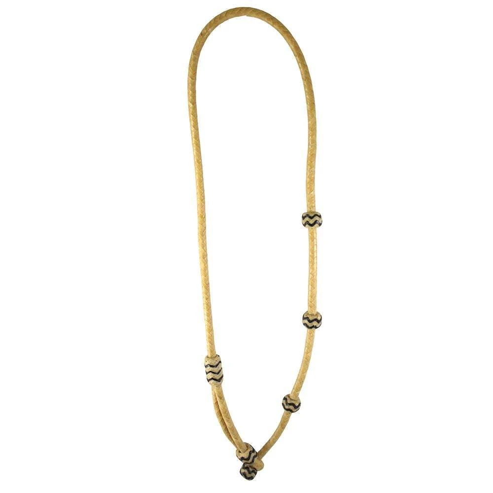 Rawhide braided neck rope with adjustable knots and a sliding honda for precise sizing.