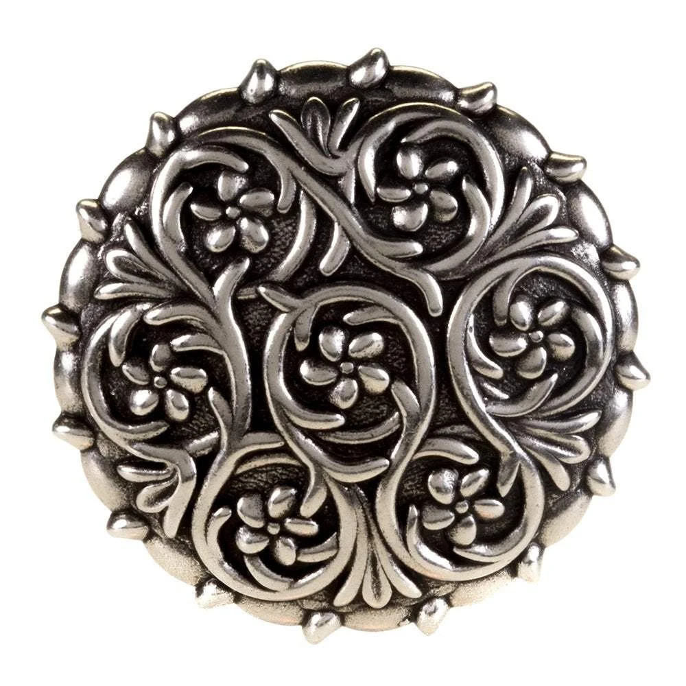This Floral Vine Scalloped Concho measures 1-1/2in in diameter. Offered in a Chicago screw. This Concho is great for headstalls, belts, saddles and leggings!