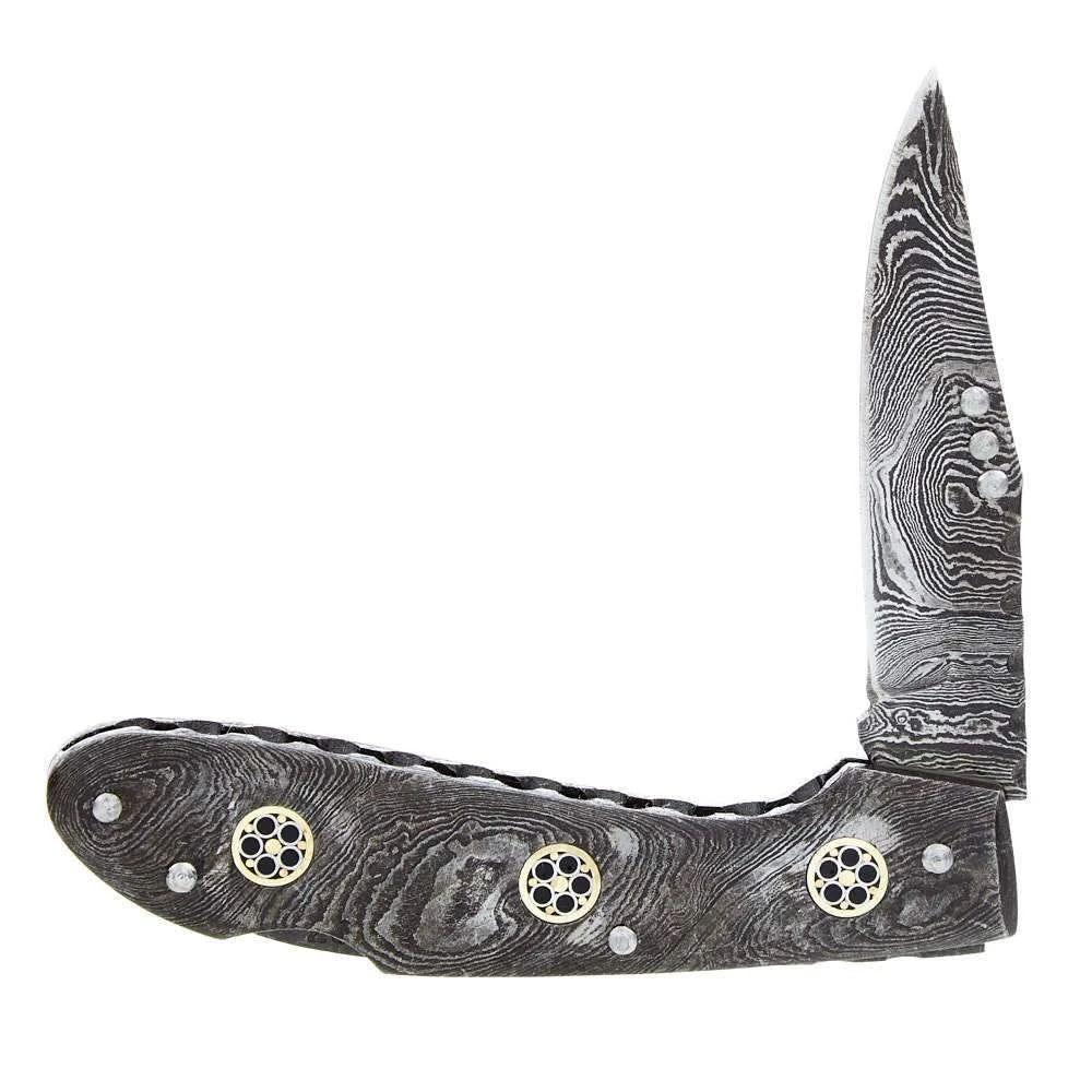 Eclectic selection of patterns on this handle and blade. This damascus steel is a showcase in itself. A great Rite Edge lockback for your travel gear whether hunting, hiking, backpacking, riding, camping, fishing or work. Style DM1135