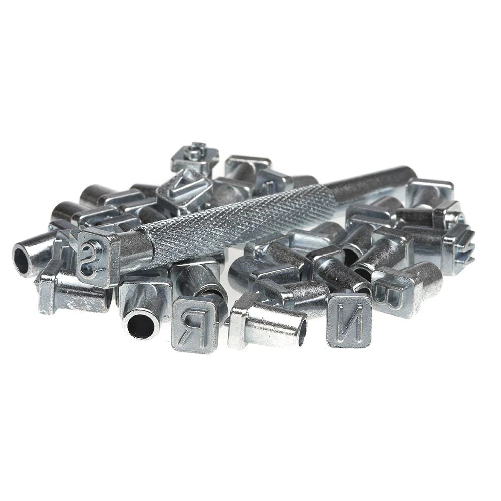 This Alphabet and Numbering Set includes a handle, 35 die cast stamping heads that produce clear letter and number impressions on leather.